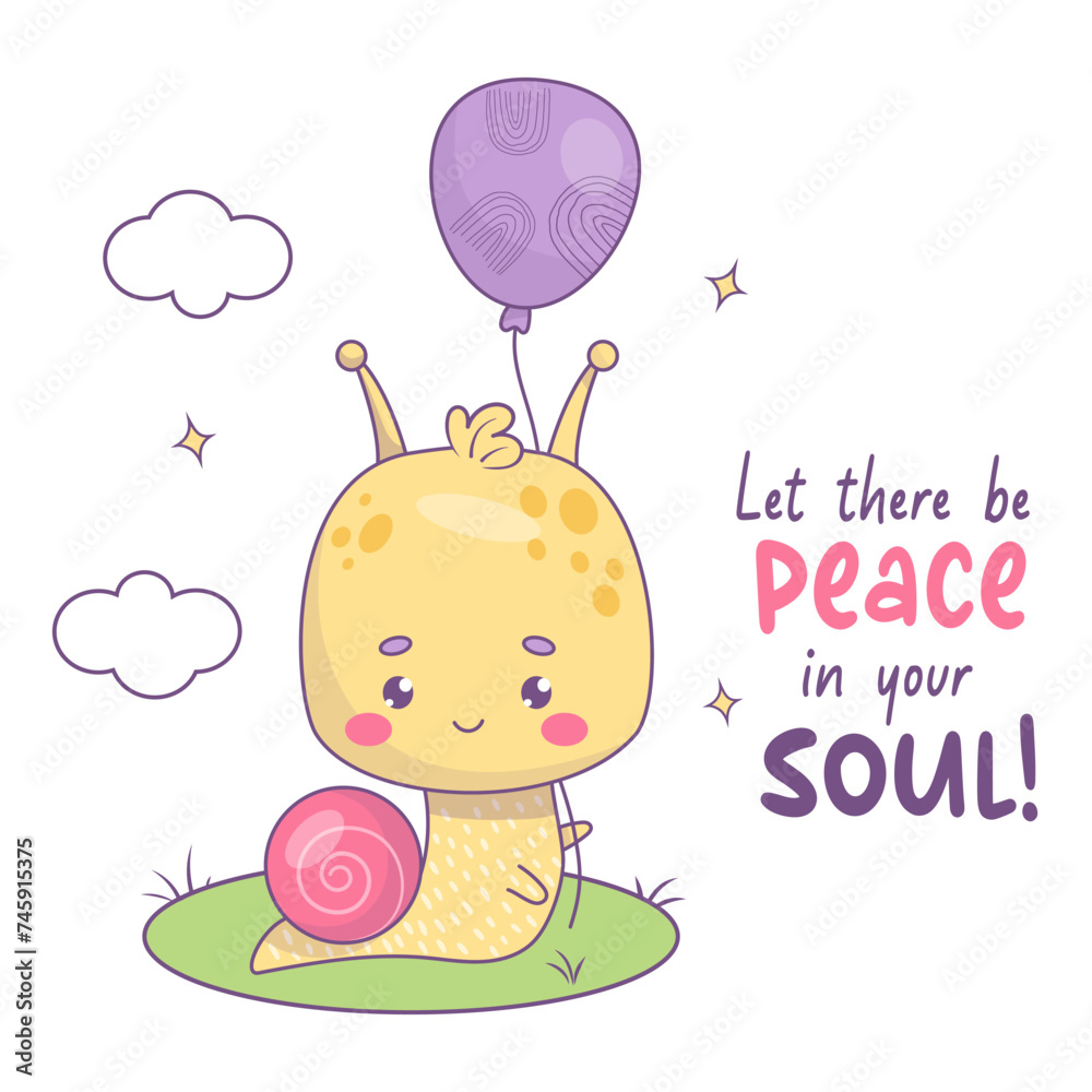 Fotografie Funny small snail character with balloon