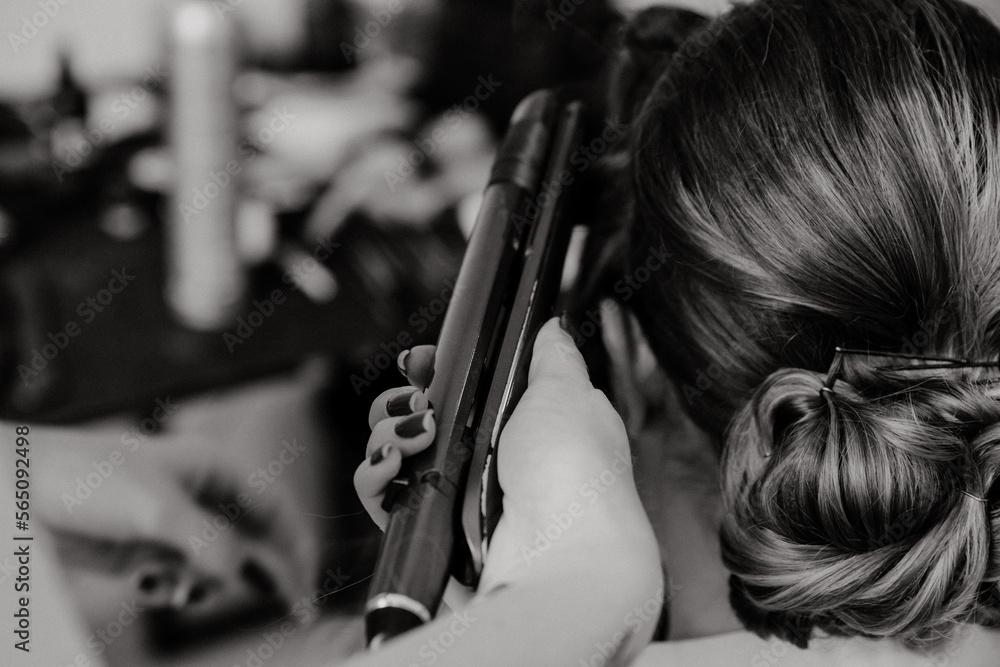 Fotografie Future mariée pendant sa préparation de la coiffure