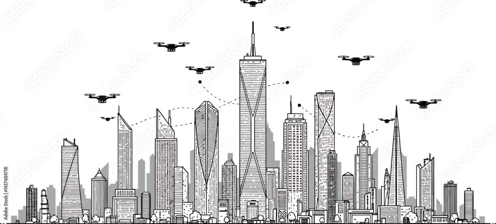 Fotografie Futuristic Smart City Skyline - Vector Design