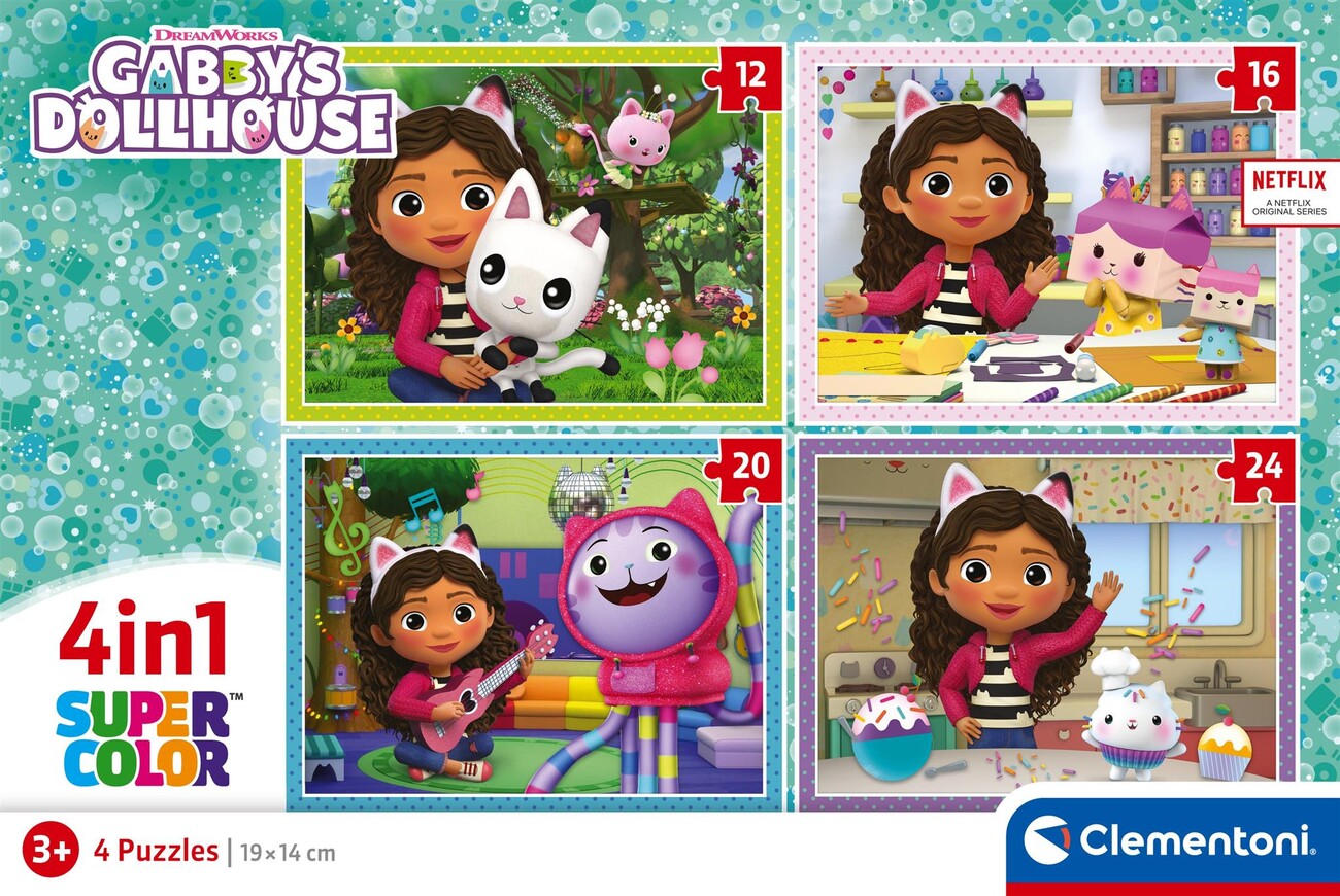 Čtyři puzzle Gábinin kouzelný domek s rostoucí obtížností: 12, 16, 20 a 24 dílků. Jak roste počet dílků, zmenšuje se jejich velikost – děti tak postupují krok za krokem a získávají jistotu. Jasné barvy a veselé motivy podporují soustředění. Puzzle Clementoni vynikají ostrostí tisku, přesným výsekem a perfektním lícováním, takže skládání jde skoro samo. Baleno v robustní, elegantní krabici.