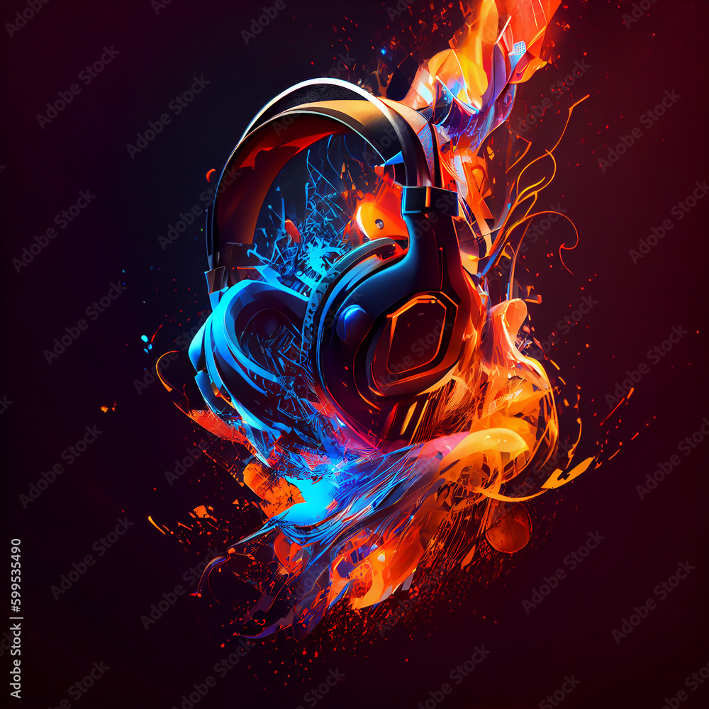 Fotografie Gaming headset, futuristic looking with splash lights and colors