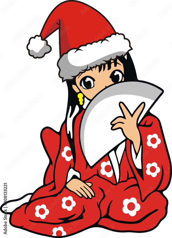 Fotografie Geisya, wearing Santa hat celebrate Christmas
