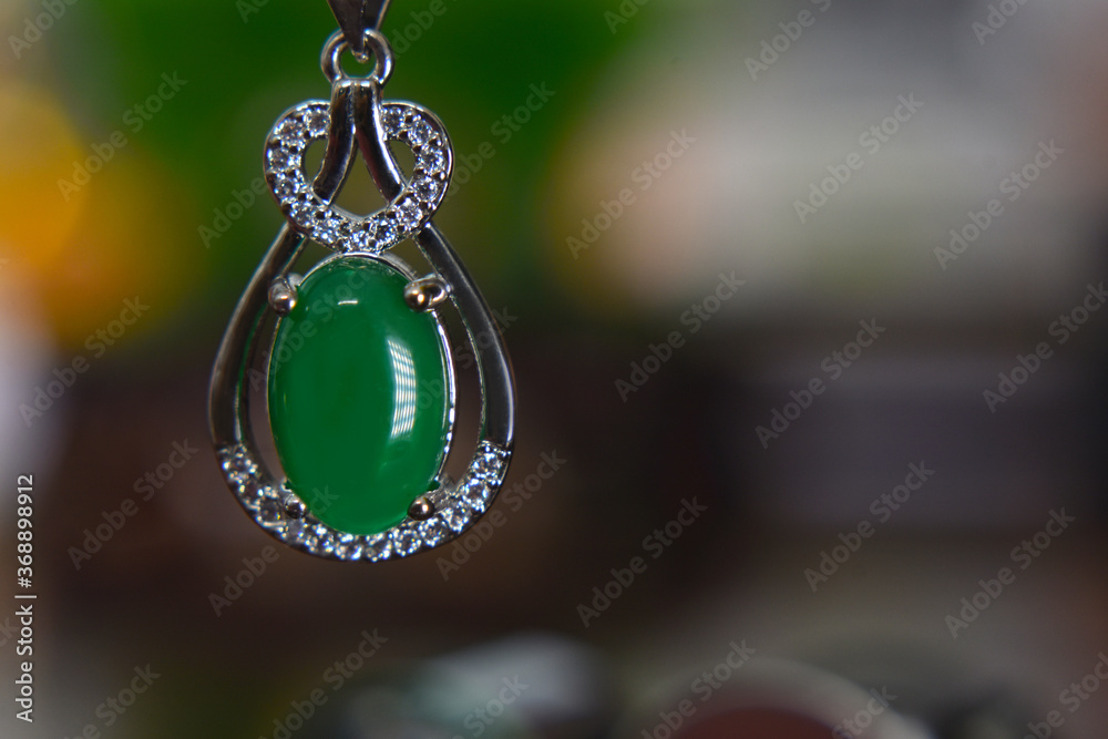 Fotografie Gemstones jewelery Is a pendant necklace decorated with green jade