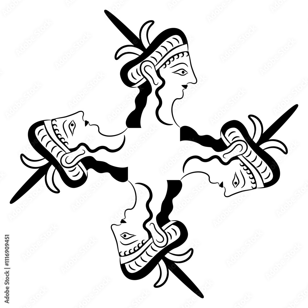 Fotografie Geometrical cross shape design with four heads of Mycenaean women