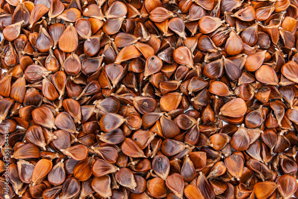 Fotografie Gesammelte Bucheckern Nüsse als Wildfrüchte