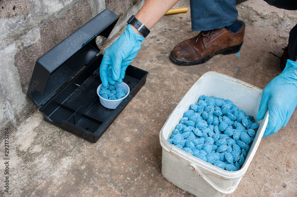 Fotografie Get rid of rat using bait poison box, pest control in industry.