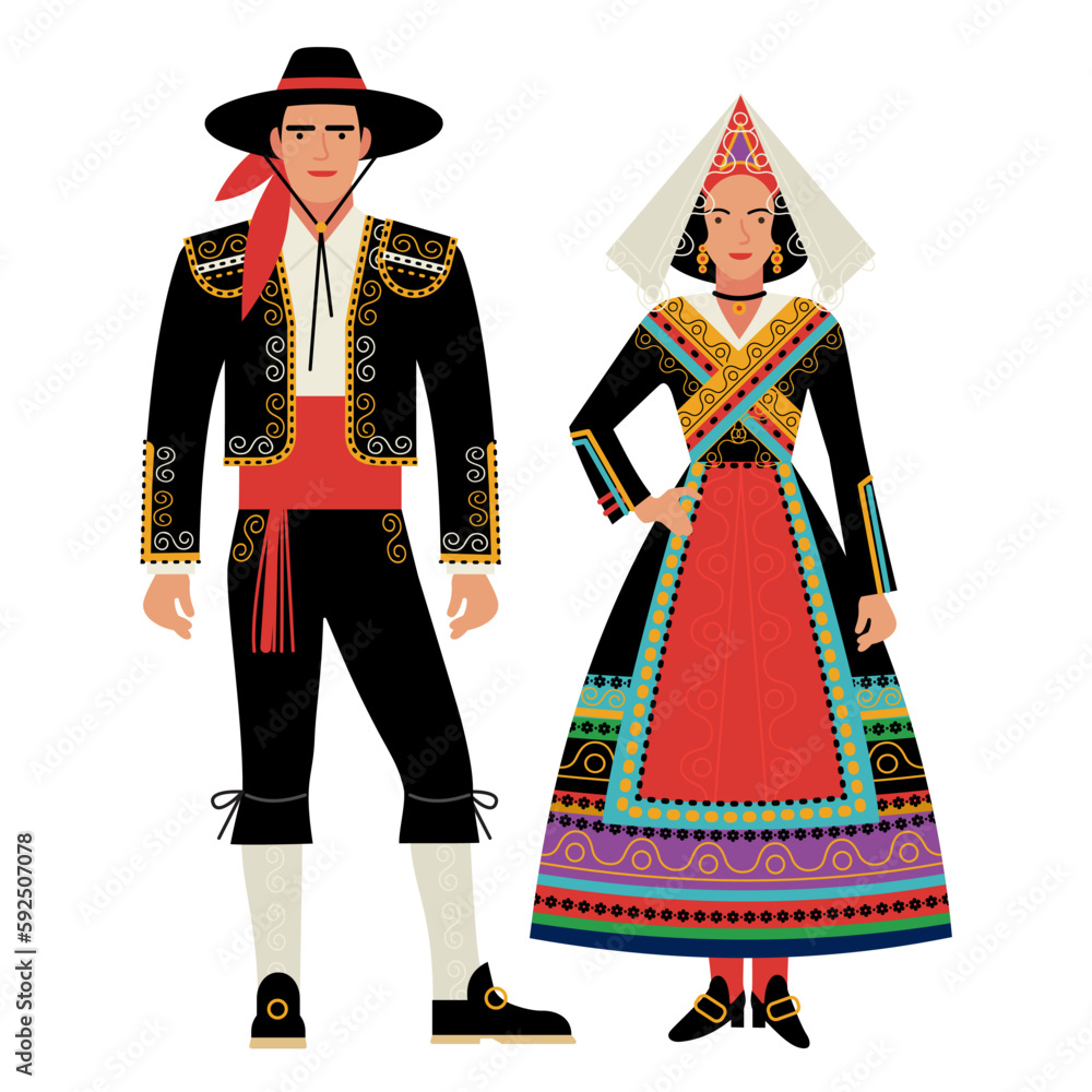 Obraz na plátně girl and young man in Spanish folk costume