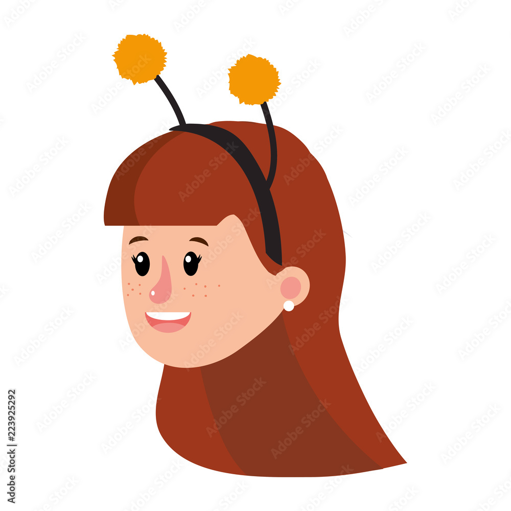 Fotografie girl head with bee costume and hairstyle
