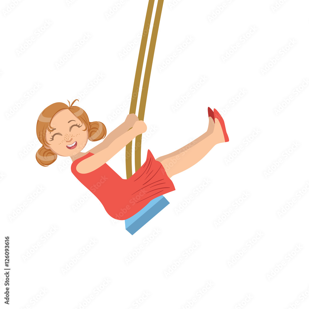 Fotografie Girl In Red Dress Enjoying The Swings