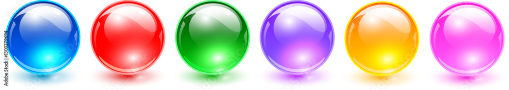 Fotografie Glass balls set, multicolored 3d shiny spheres collection.