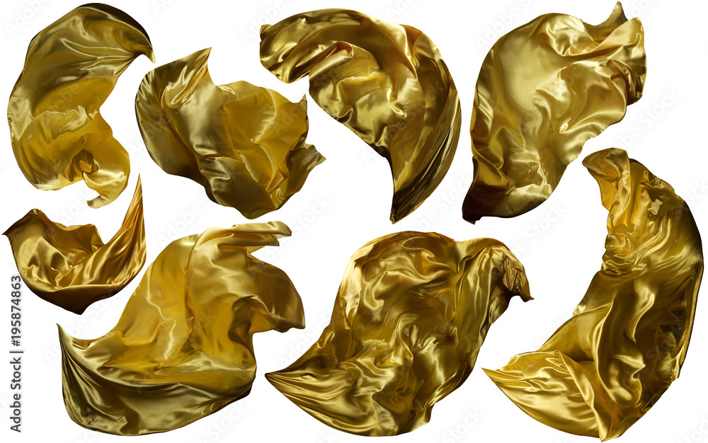 Fotografie Golden Flying Fabric, Flowing Waving Gold Cloth, Shine Yellow Clothes Drapes Pie