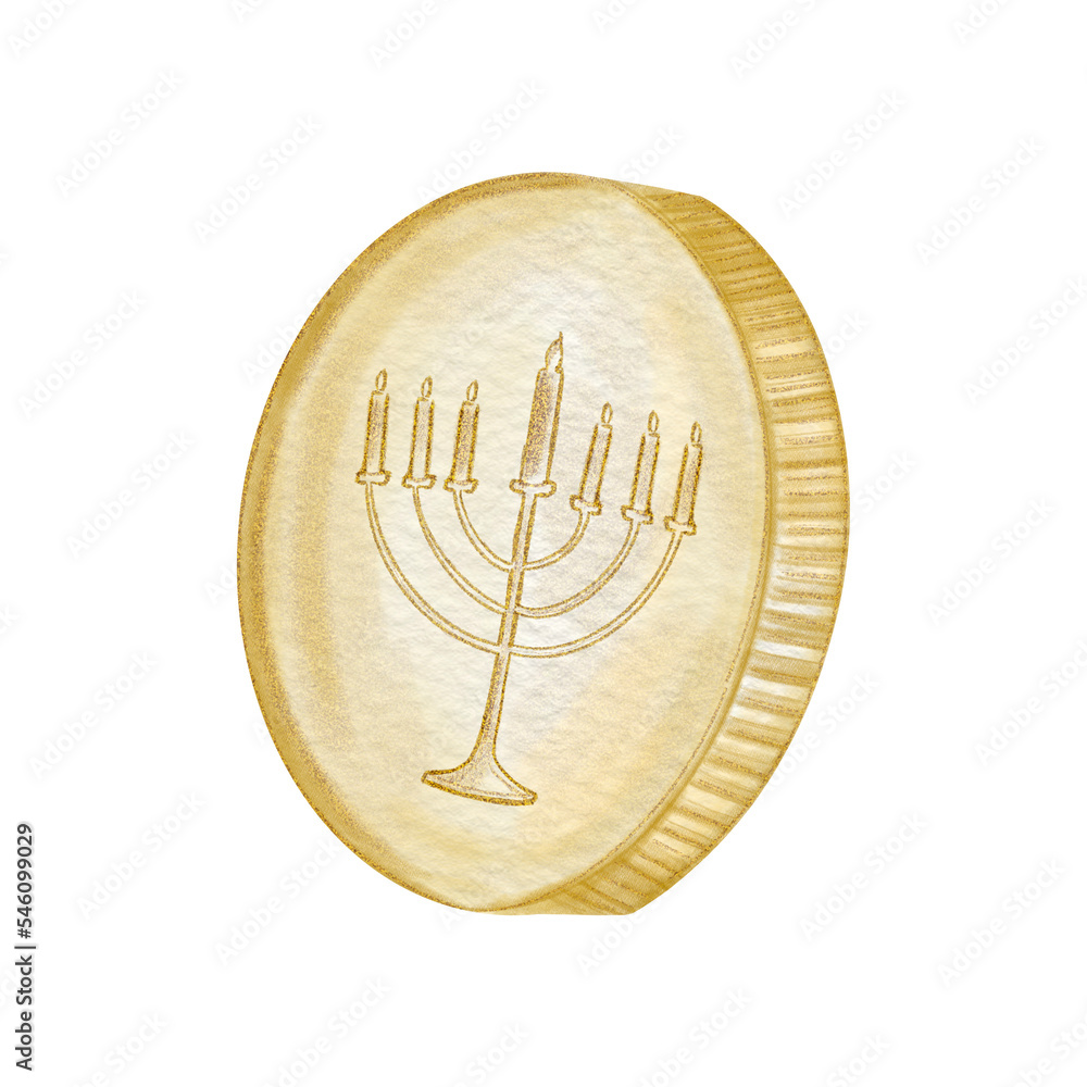Fotografie Golden gelt with Menorah engravement