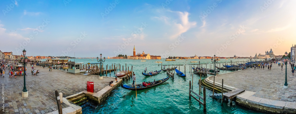 Fotografie Gondolas with San Giorgio Maggiore at sunset, Venice, Italy