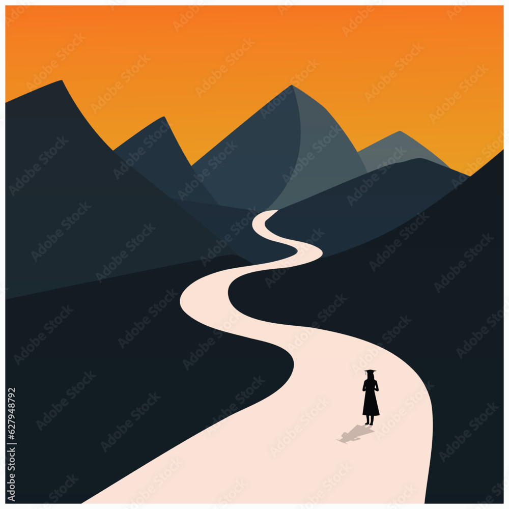 Obraz na plátně graduation woman silhouette, path way road, mystery to success career, sunset la