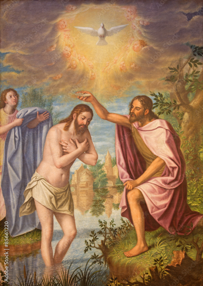 Granada - Baptism of Christ painting in Monasterio de la Cartuja