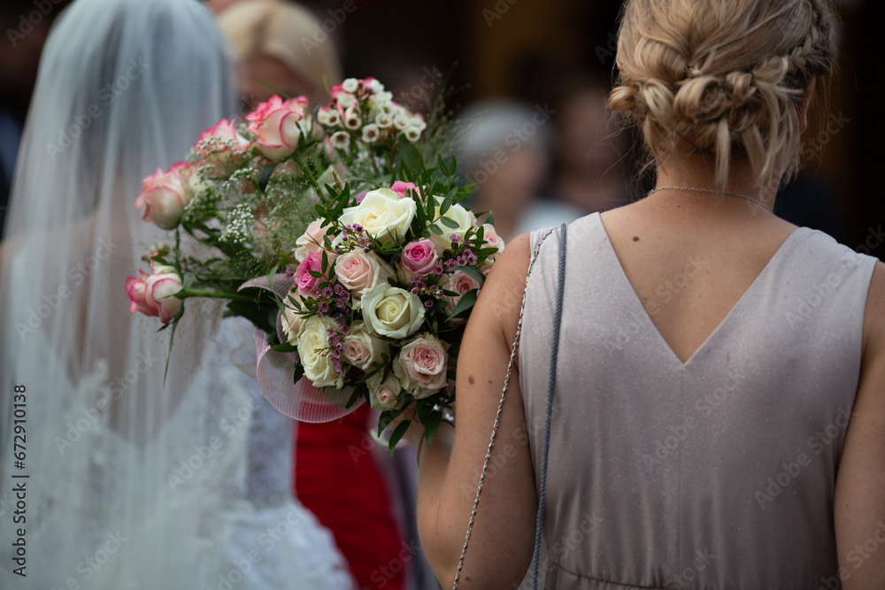 Fotografie Gratulieren zur Hochzeit mit Blumenstrauss