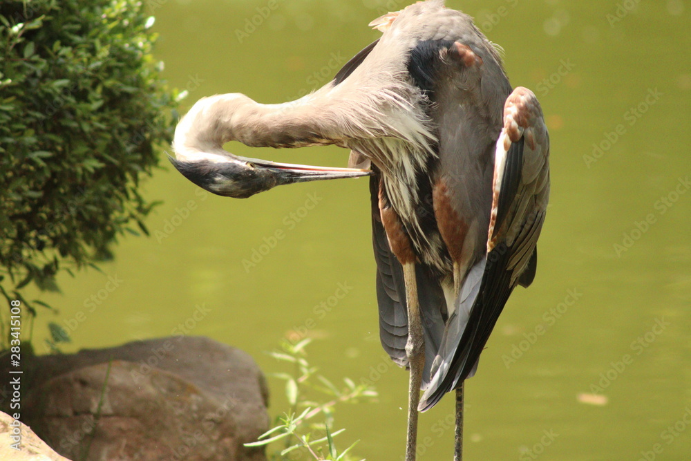 Obraz na plátně great blue heron cleaning