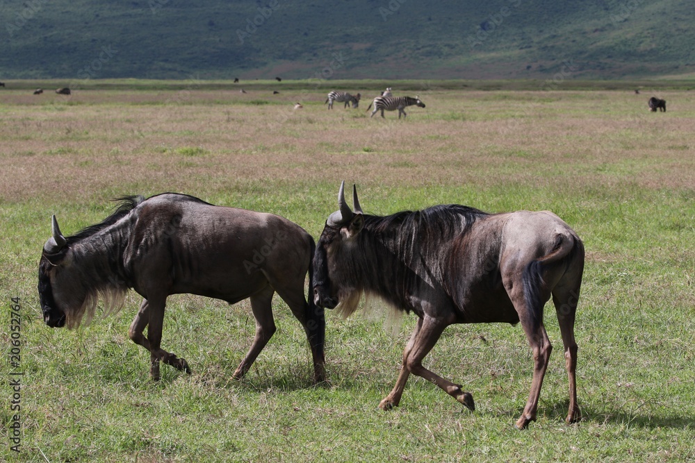 Fotografie Great Migration Serengeti, Wildebeest bulls fighting