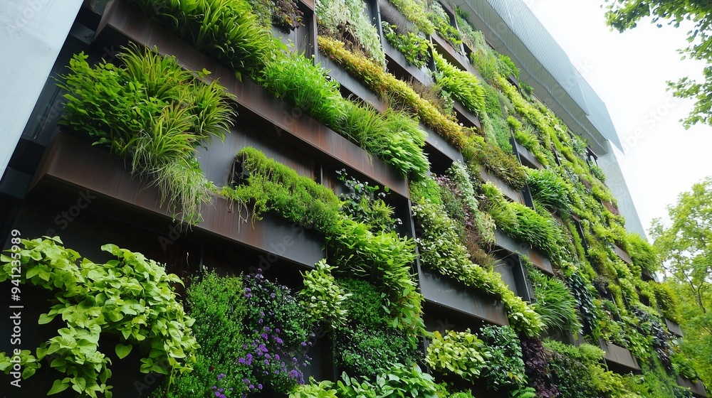 Fotografie Green lush vertical balconies and rooftop represent sustainable architecture with integrated greenery