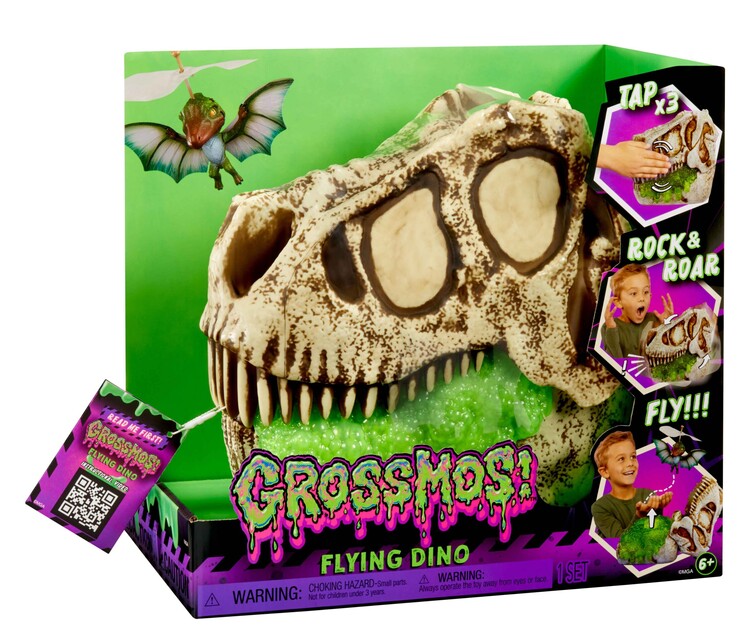 Zábavný GrossMos Flying Dino je velký spící dinosaurus, který má v tlamě schovaného malého létajícího dinosaura. Napájeno přes USB.