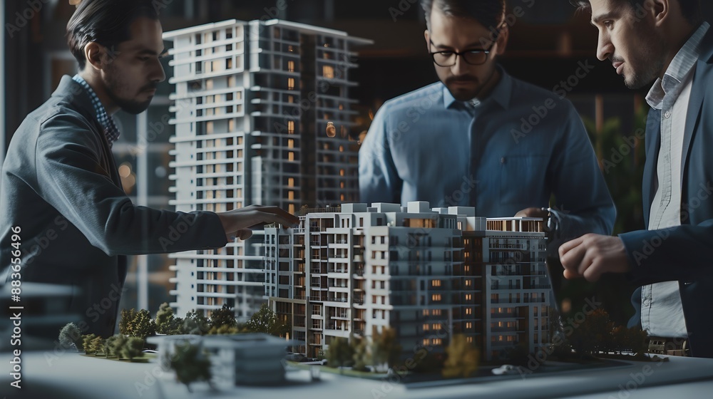 Fotografie Group of engineer is discussion and brainstorming about condominium model of con