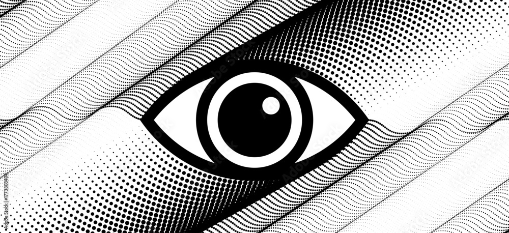 Fotografie Halftone eye abstract illustration – black and white vision concept with wavy dotted pattern