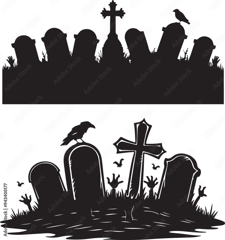 Fotografie Halloween Graveyard Scene Vector Illustration
