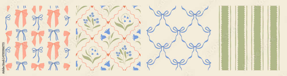 Fotografie Hand drawn coquette seamless pattern collection with a charming floral whimsical design