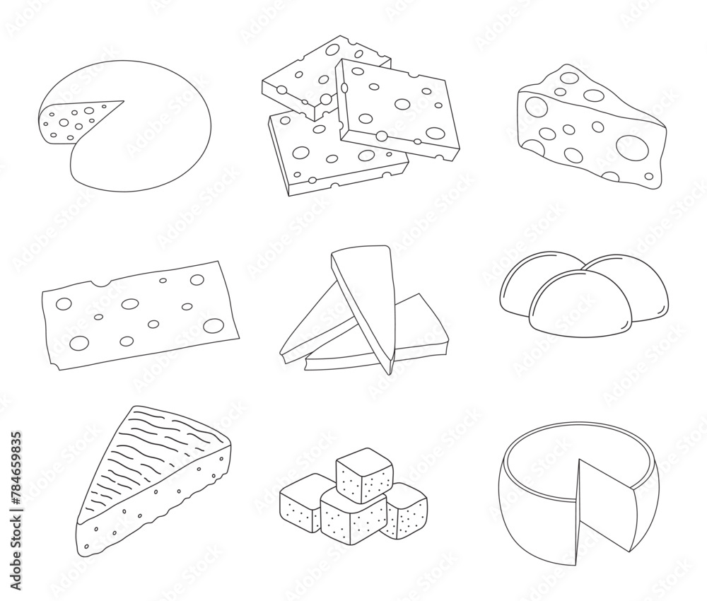 Fotografie Hand drawn Kids drawing cartoon Vector illustration set of different types chees