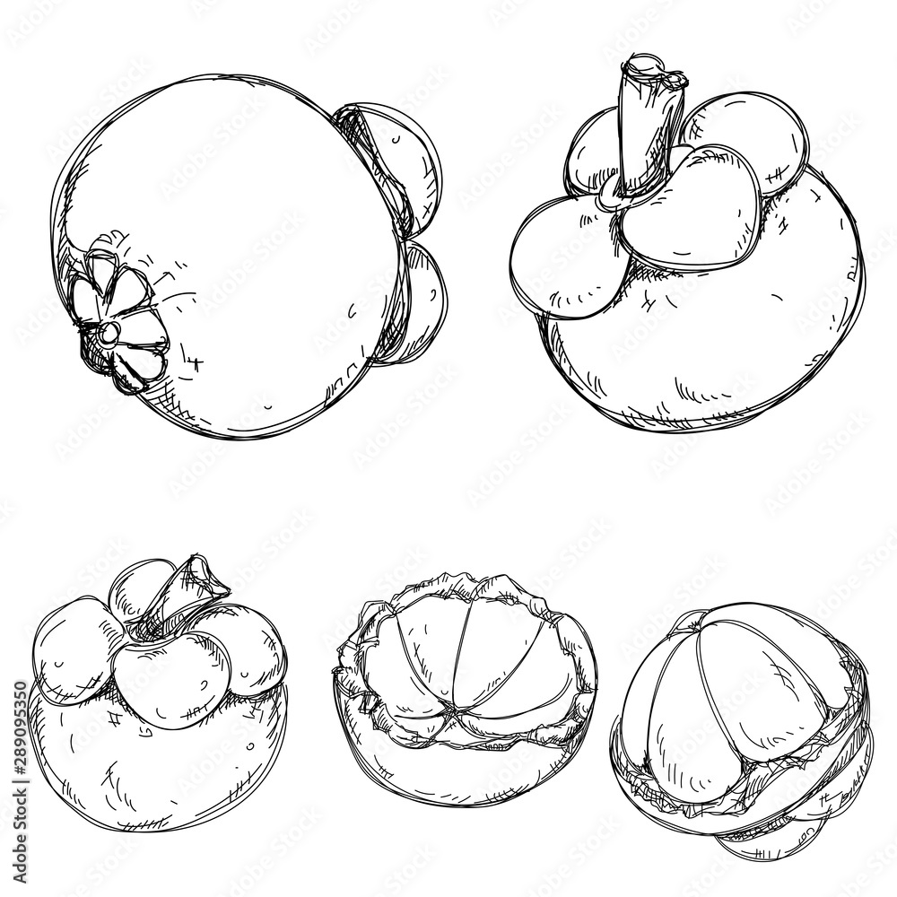 Fotografie Hand drawn mangosteen tropical fruit isolated on white background