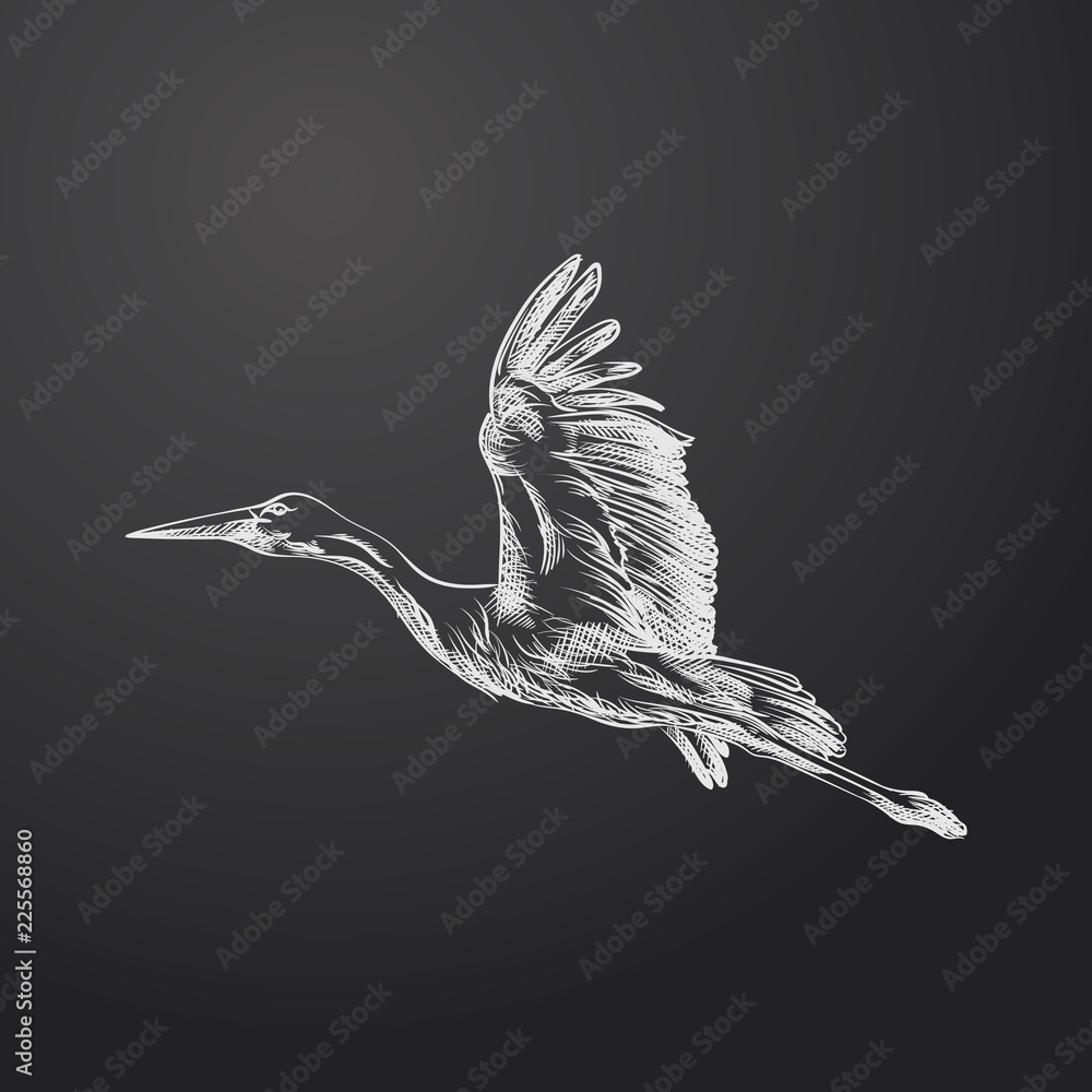 Fotografie Hand Drawn Stork Sketch Symbol isolated on chalkboard