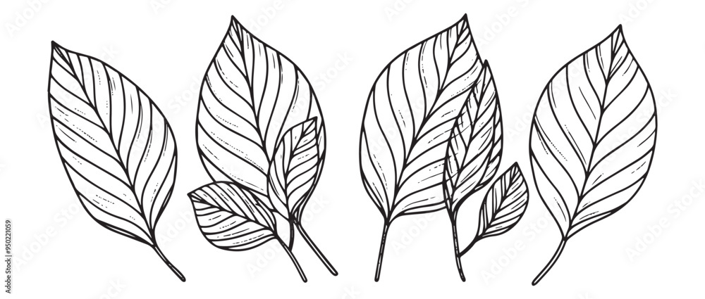 Fotografie Hand-Drawn Tropical Leaves Sketch in Black and White with Detailed Linework and