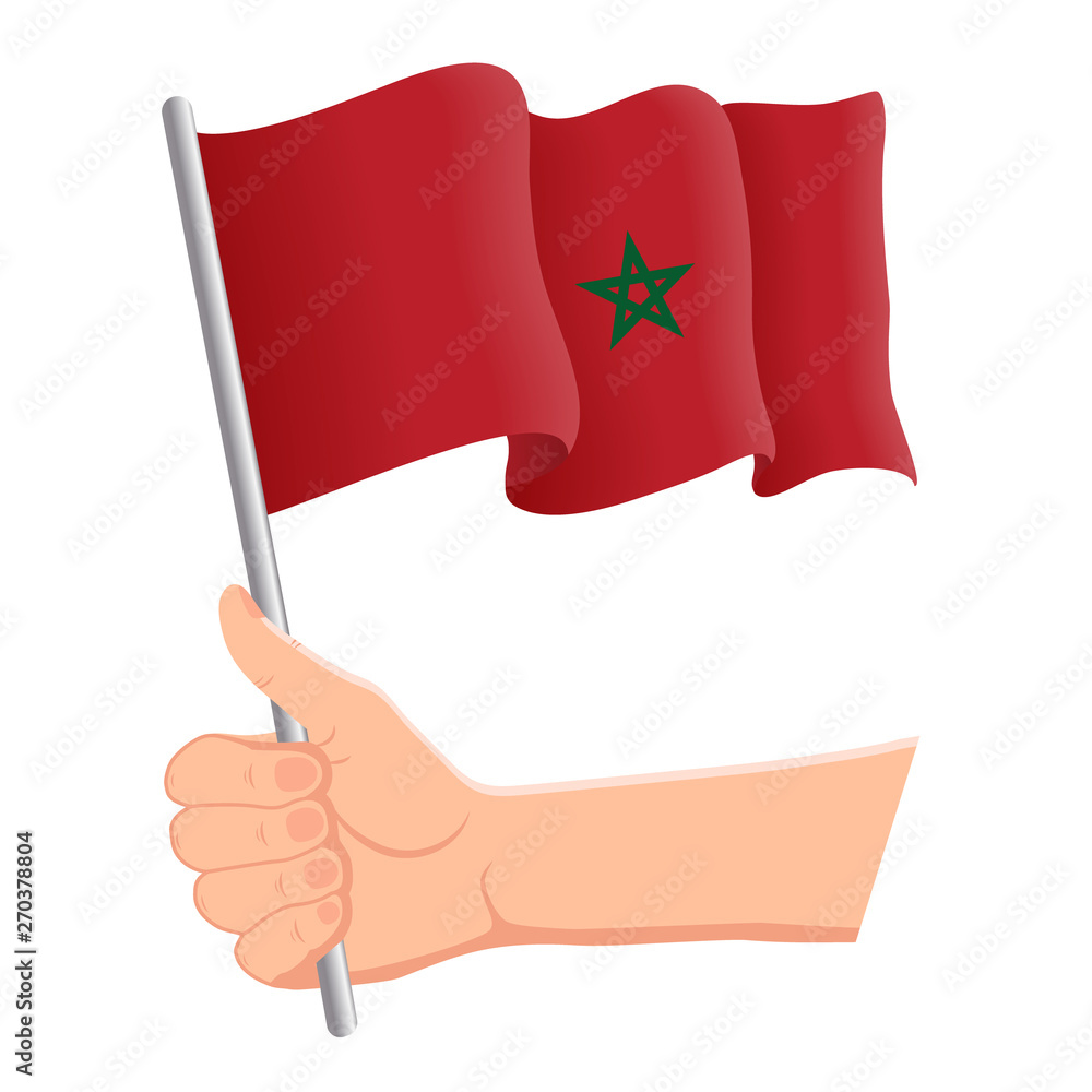 Fotografie Hand holding and waving the national flag of Morocco