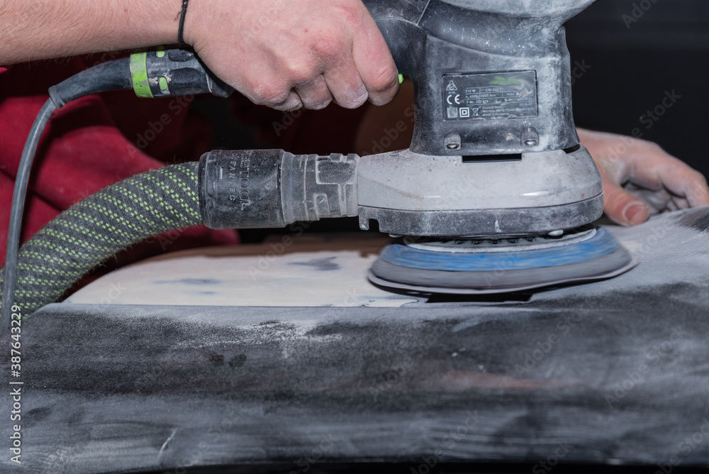 Fotografie Handwerker schleift Metall - Nahaufnahme
