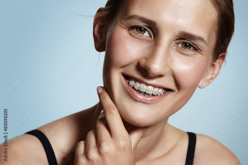 happy girl is smiling with a braces