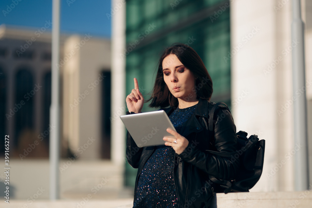Fotografie Happy Pregnant Woman Holding a PC Tablet