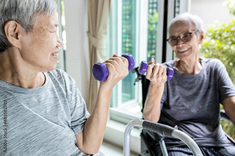 Fotografie Happy smiling asian senior women exercising together,physical exercise activitie