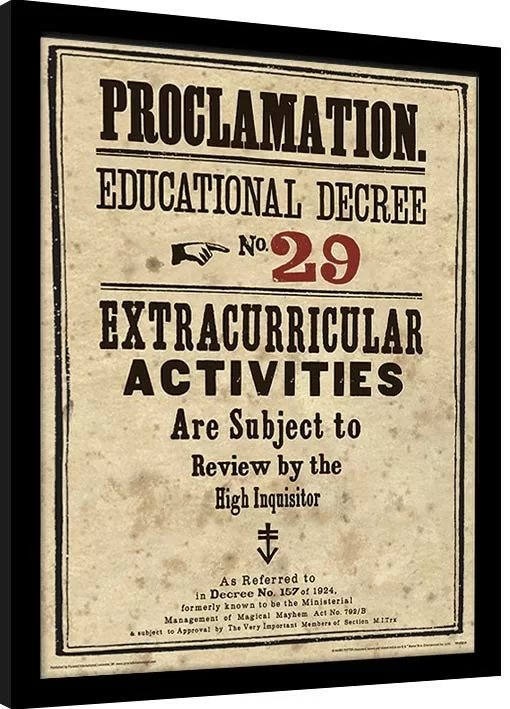 Zarámovaný plakát Harry Potter - Educational Decree No. 29