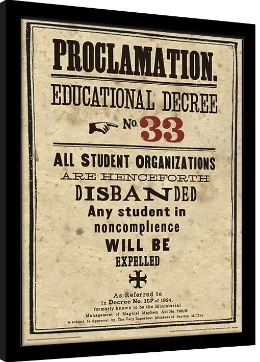 Zarámovaný plakát Harry Potter - Educational Decree No. 33