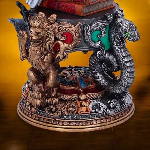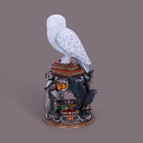 Precizně zpracovaná figurka Hedviky z Harryho Pottera je stylový sběratelský kousek o výšce 22 cm. Základnu figurky zdobí znaky všech čtyř bradavických kolejí – Nebelvíru, Zmijozelu, Mrzimoru a Havraspáru. Figurka je odlita z kvalitní pryskyřice a ručně malovaná.