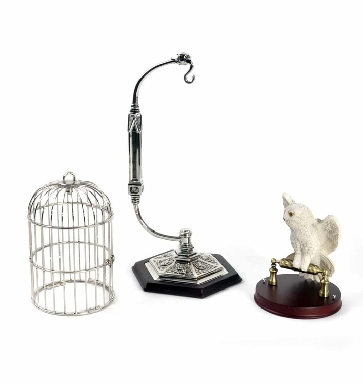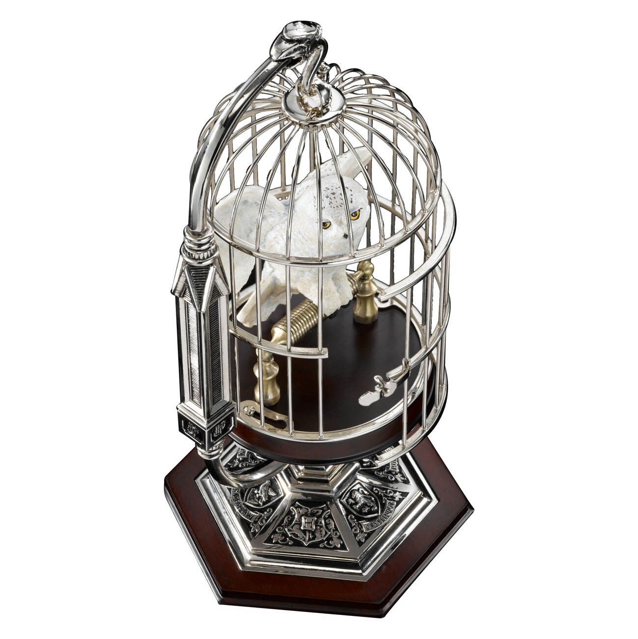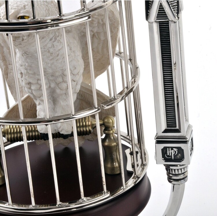 Přivítejte Hedviku, věrnou sněžnou sovu Harryho Pottera, ve formě nádherné miniatury v kleci. Tato precizně zpracovaná replika přináší kouzlo Bradavic přímo do vašeho domova, včetně elegantního obloukového podstavce, na kterém je klec zavěšena.