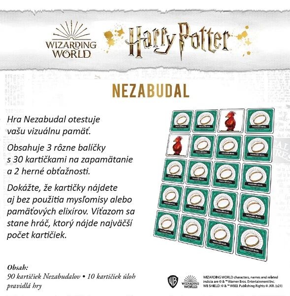 Dokážte, že kartičky nájdete aj bez použitia mysľomisy alebo pamäťových elixírov. Víťazom sa stane hráč, ktorý nájde najväčší počet kartičiek. Hra obsahuje 3 rôzne balíčky s 30 kartičkami na zapamätanie a 2 herné obťažnosti.