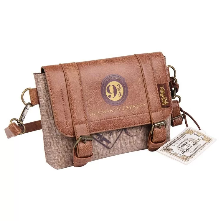 Kompaktní crossbody taška s motivem Harry Potter – Nástupiště 9¾, kterou díky odnímatelnému popruhu snadno proměníte v ledvinku. Nadčasová kombinace plátna a koženky se zlatými detaily 9¾ dodá čistý fanouškovský akcent. Skvělá volba na dny s volnýma rukama – do města, na festival i na cesty.