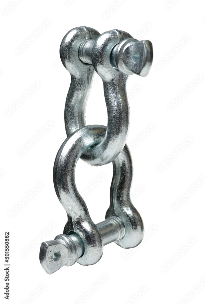 Fotografie Heavy duty shackle (d-ring) for vehicle recovery and towing on white background