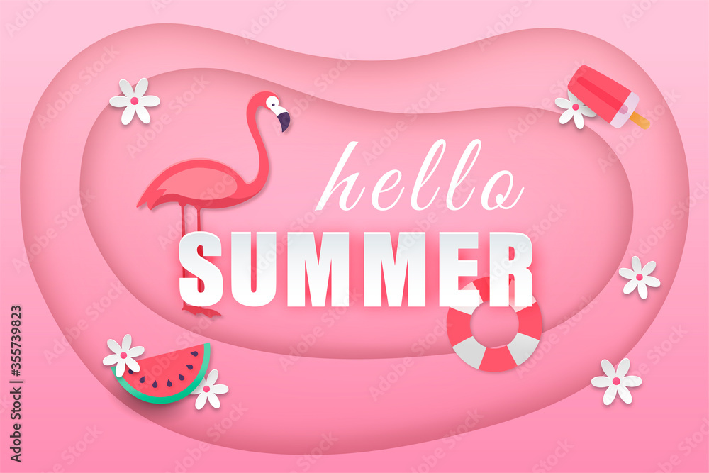 Fotografie Hello summer with decoration pink paper and craft style