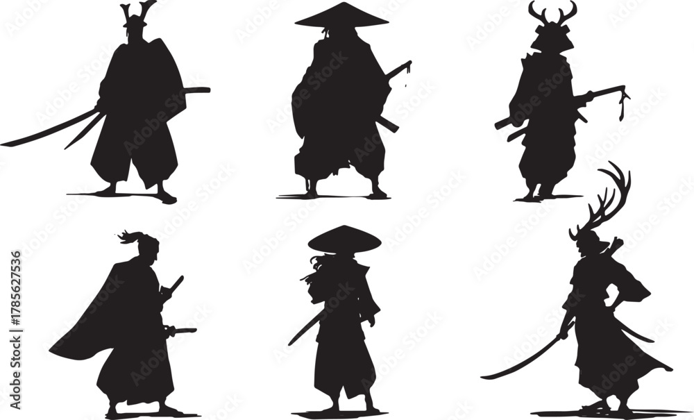Obraz na plátně Historical Samurai Archetype Silhouette Collection