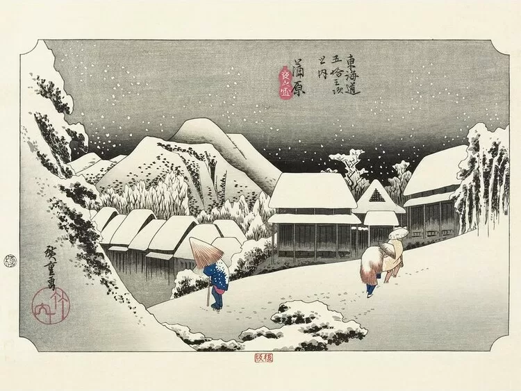 • Umělecký tisk Hokusai - Kanbara Night Snow je vytištěn na vysoce kvalitní polomatný papír o gramáži 300 g/m²