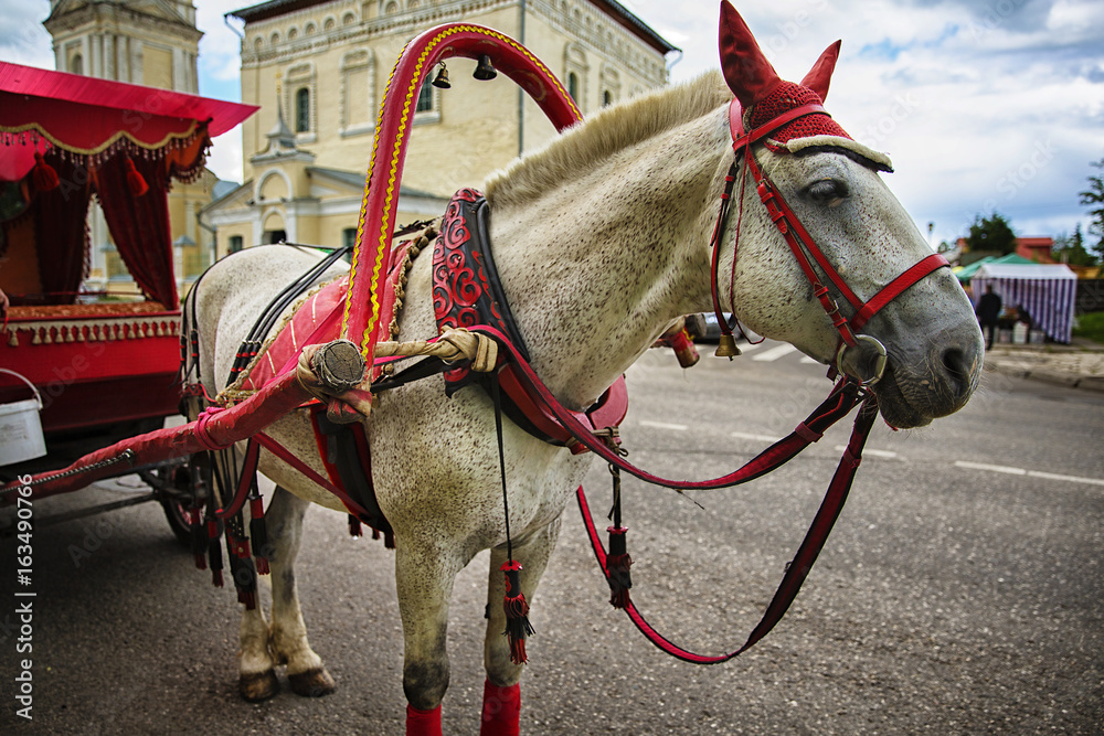 Fotografie Horse drawn,Tourist transportation carthorse
