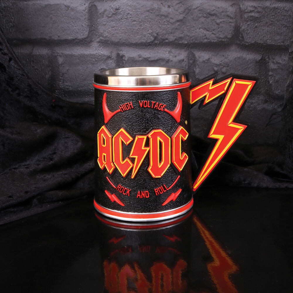 Je tu nový způsob, jak vyjádřit svou oddanost rockovým titánům, ACDC! Tento úžasný korbel, vytvořený alternativní značkou Nemesis Now, vznikl díky neúnavné práci jejich designérského týmu! Obklopen slovy „high voltage rock and roll“ mezi párem červených ďábelských rohů, je logo ACDC s bleskem umístěno přímo uprostřed. Na zadní straně korbele je na červeném pozadí zvýrazněn ikonický silueta Anguse Younga, obrysem ve elektrické žluté barvě. Tyto živé barvy se opakují na rukojeti, která připomíná charakteristický blesk kapely. Odlit z vysoce kvalitní pryskyřice a ručně malovaný, korbel má odnímatelnou nerezovou vložku, takže můžete strávit méně času čištěním a více času na cestě po Highway to Hell! Všichni vzdejme hold ACDC!