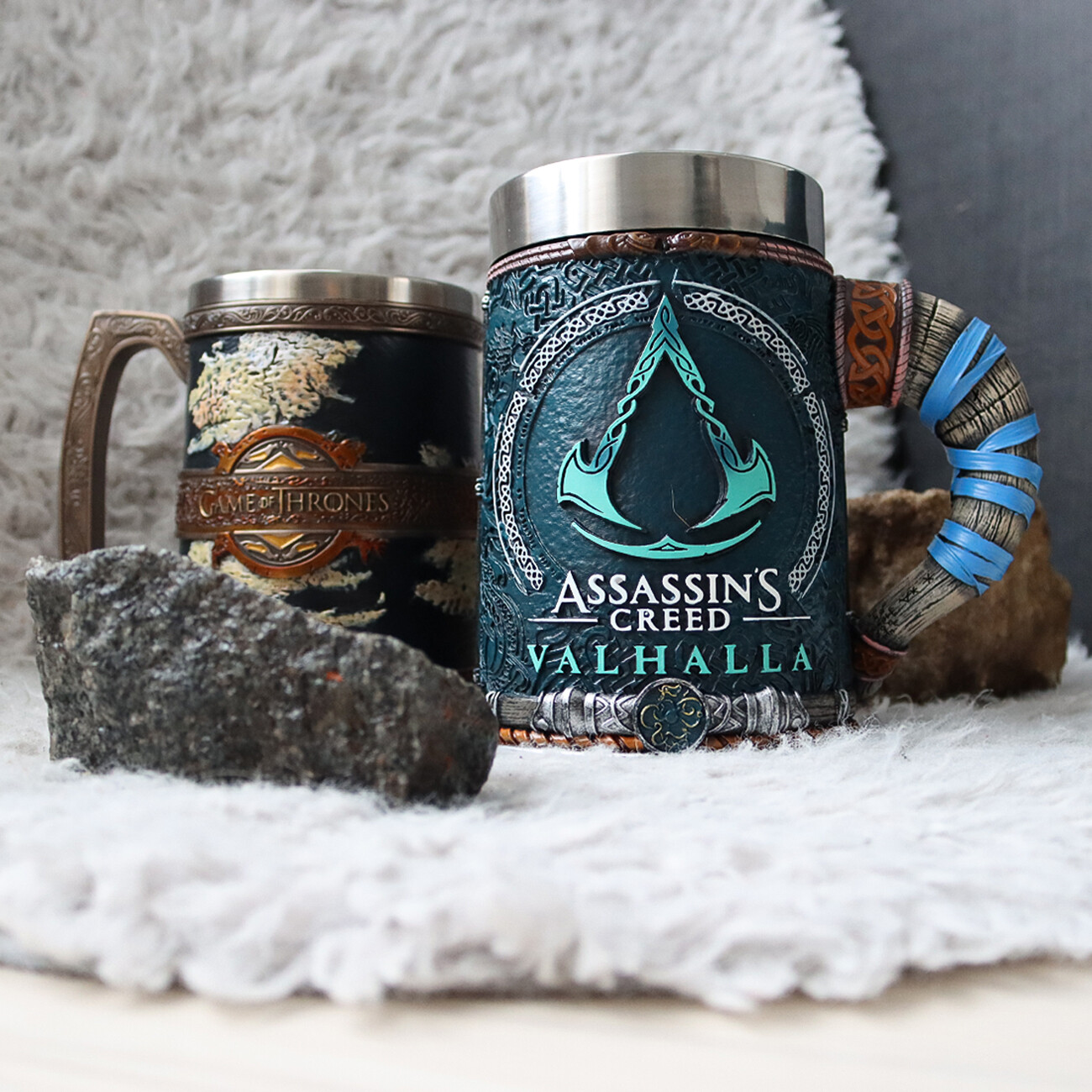 Pro Vikingy bylo pití více než jen konzumace nápojů, bylo to oblíbenou součástí jejich kultury, raději by bojovali a zemřeli za svůj nápoj než se ho vzdali. Uctěte starodávnou skandinávskou tradici a pozvedněte svůj tankard s Eivorem, neohroženým vikingem, z nejnovějšího dílu franšízy Assassin's Creed, 'Assassin's Creed Valhalla'. Oslavte nejnovější vydání jednoho z nejprodávanějších videoherních franšíz všech dob s tankardem Assassin's Creed Valhalla od Nemesis Now. Zručně vytesáno, poté odlito z nejkvalitnější pryskyřice a pečlivě ručně malováno, tento kousek je ideálním dárkem pro každého fanouška Assassin's Creed.